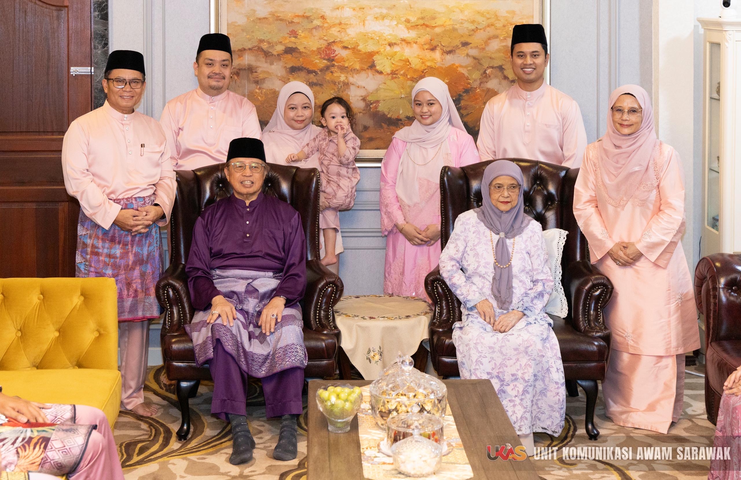 KUCHING: Premier Sarawak, Datuk Patinggi Tan Sri Abang Johari Tun Openg bersama isteri, Puan Sri Datuk Amar Juma’ani Tun Tuanku Bujang meneruskan kemeriahan Aidilfitri dengan berkunjung ke majlis rumah terbuka kediaman rasmi Setiausaha Kerajaan Sarawak, Datuk Amar Mohamad Abu Bakar Marzuki.