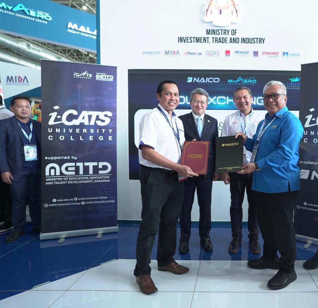 KUCHING: Sarawak terus komited untuk membina keupayaan dalam sektor berteknologi tinggi apabila Kolej Universiti i-CATS memeterai Memorandum Persefahaman (MoU) dengan National Aerospace Industry Corporation Malaysia (NAICO Malaysia) sempena Pameran Maritim dan Aeroangkasa Antarabangsa Langkawi (LIMA ’25) di Langkawi.