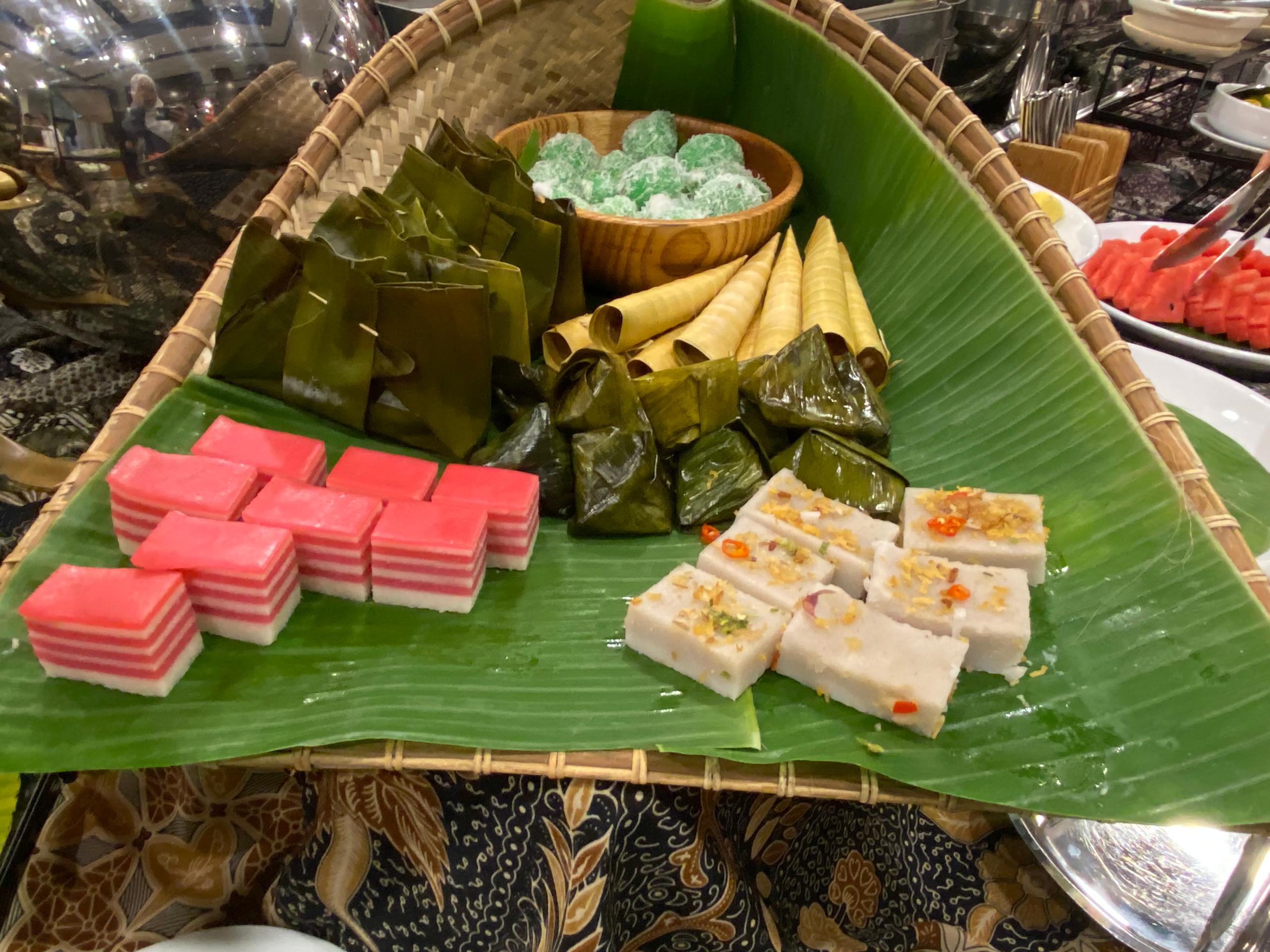 Sementara, pelbagai jenis kuih tempatan, kek, puding, cucur dan ais krim disajikan sebagai pencuci mulut.
