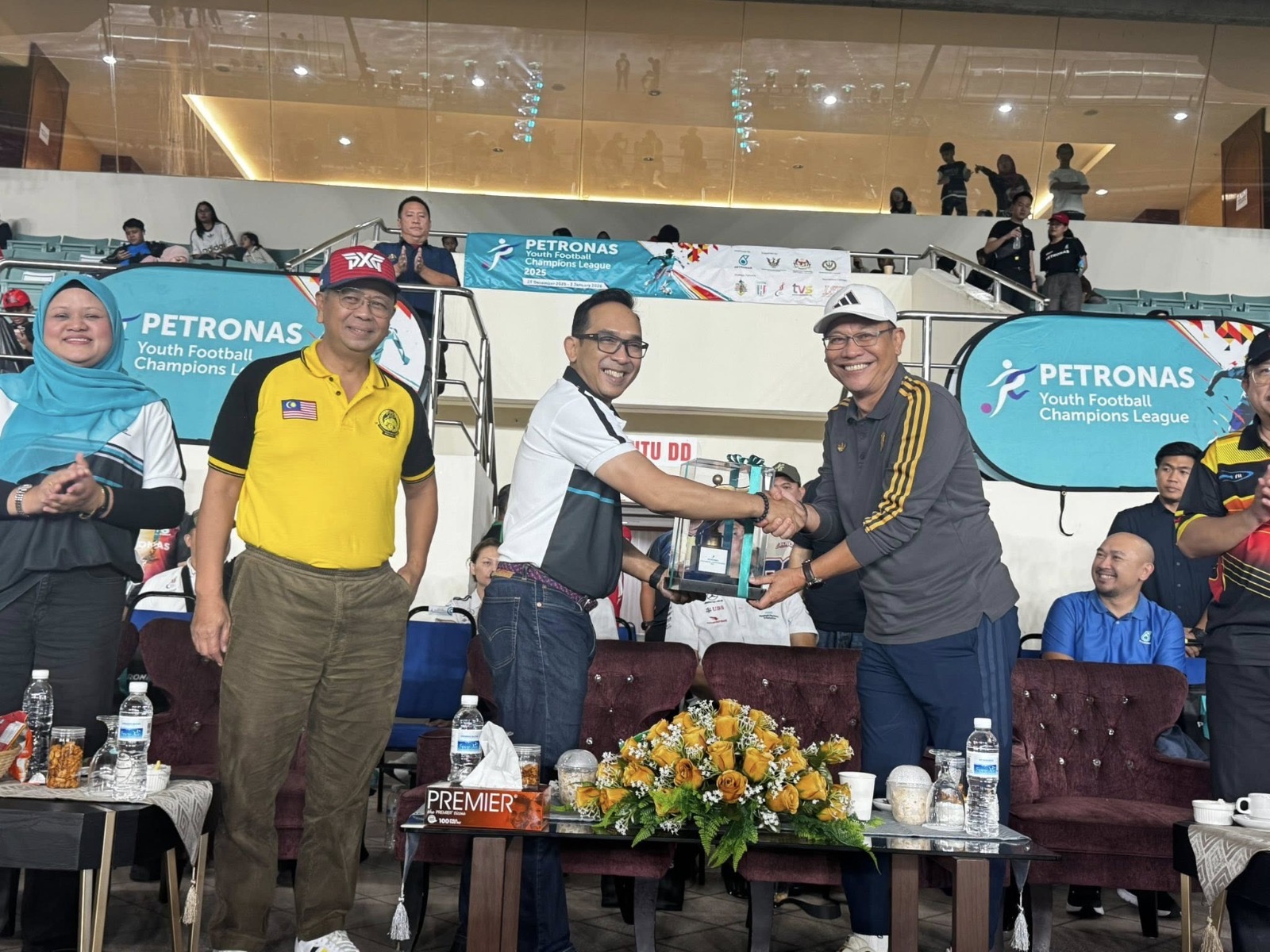 Majlis Penangguhan dan Penyampaian Hadiah PYFCL 2025 disempurna Timbalan Menteri di Jabatan Premier Sarawak (Hal Ehwal Korporat, Penerangan dan UKAS), Datuk Abdullah Saidol dan Pengurus Besar PETRONAS Sarawak, Norazibah M Rabu.