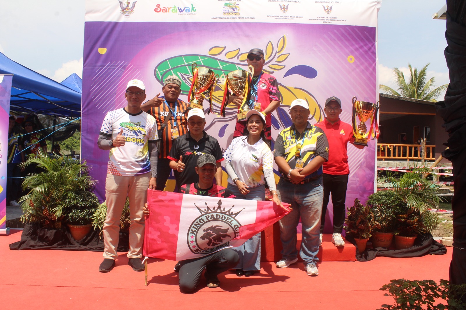 GEDONG: Perahu lumba ‘King Peddle GT’ dinobat sebagai Raja Sungai Daerah Gedong apabila menjuarai acara regata perahu bidar dengan 30 pengkayuh akhir dalam Regata Gedong hari ini.