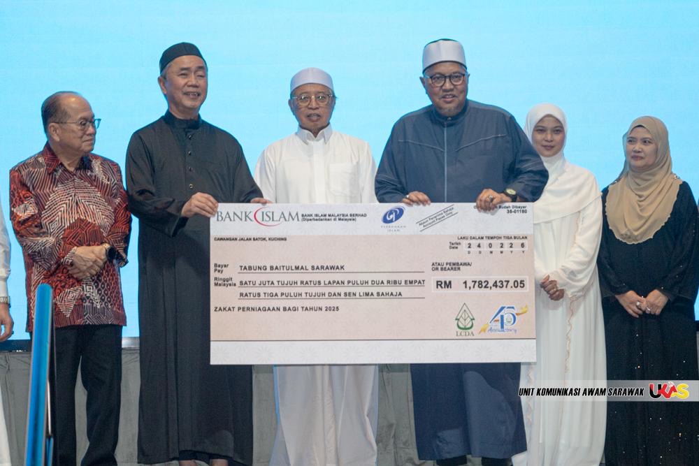 Kemuncak majlis menyaksikan Pengurus Besar LCDA, Datu Sr Zaidi Mahdi menyerahkan sumbangan Zakat Perniagaan 2025 berjumlah RM1,782,437.05 kepada Tabung Baitulmal Sarawak (TBS) yang diwakili oleh Pengurus Besarnya, Datu Abang Mohd. Shibli Abang Mohd Nailie.