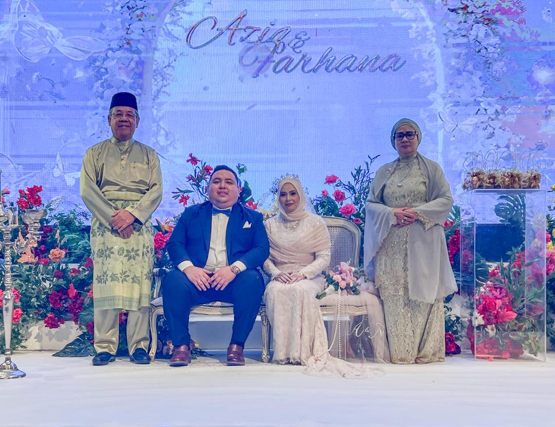 SIBU: Majlis resepsi persandingan anak sulung lelaki Ahli Parlimen Igan, Ahmad Johnie Zawawi, iaitu Aziq Azizi bersama pasangannya, Nurul Farhana Ati, berlangsung meriah di sebuah hotel di sini, malam ini.