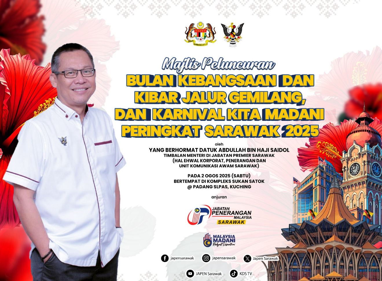 KUCHING: Majlis Peluncuran Bulan Kebangsaan dan Kibar Jalur Gemilang Peringkat Sarawak 2025 akan diadakan di Kompleks Sukan Satok @ Padang SLPAS, di sini, pada 2 Ogos ini.