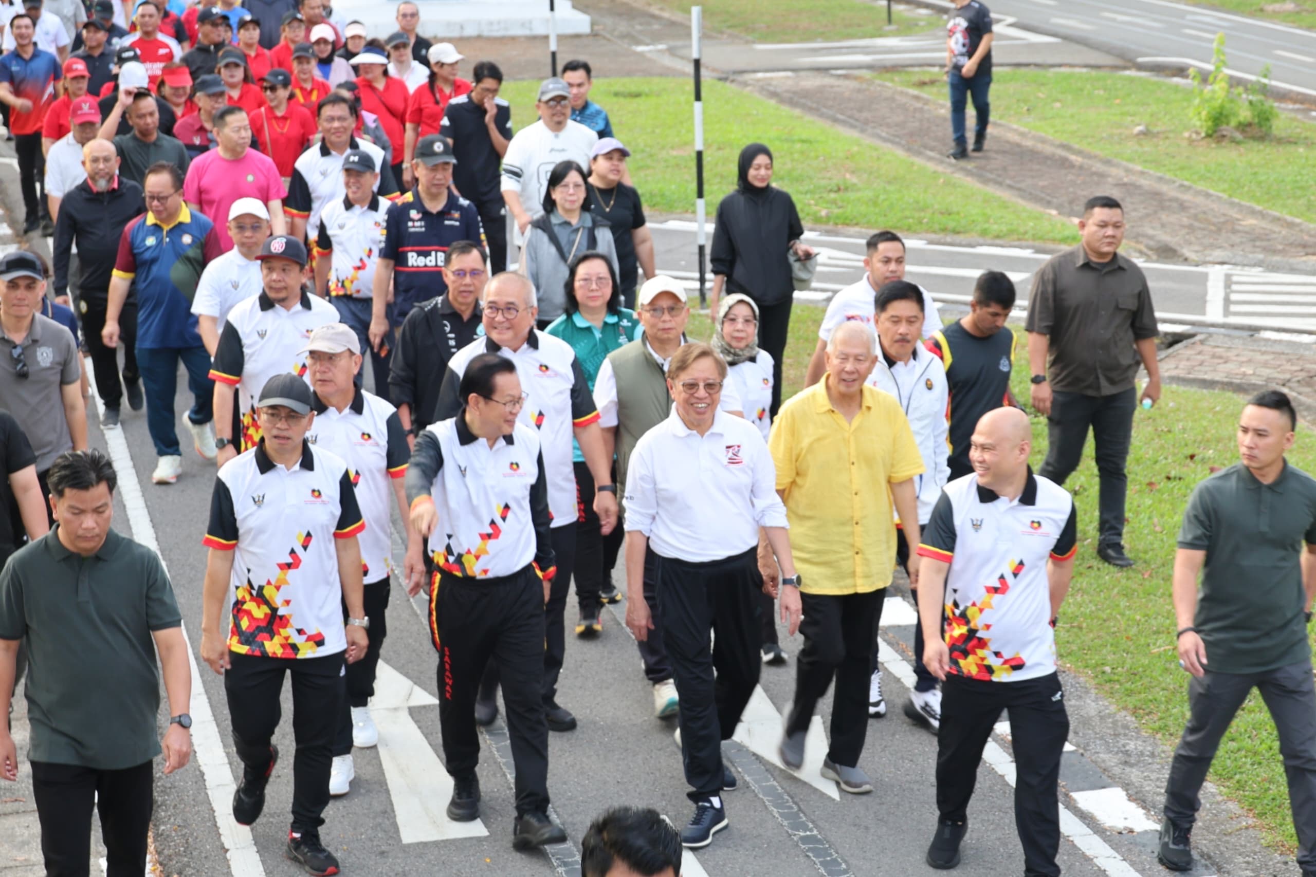 Program dimulakan dengan sesi senamrobik yang turut disertai Premier Sarawak, memperlihatkan komitmen berterusan kepimpinan negeri dalam menggalakkan kesejahteraan fizikal serta gaya hidup sihat dalam kalangan rakyat.
