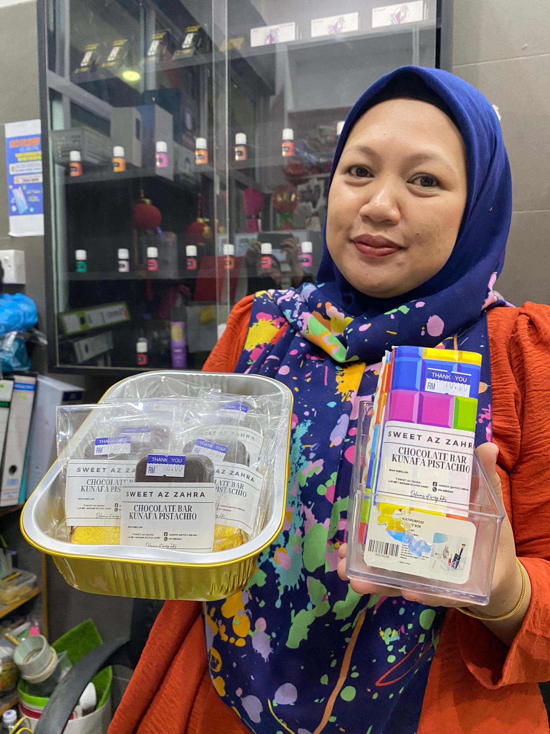 Selain itu, beliau turut menghasilkan Coklat Kunafa Pistachio yang mendapat sambutan menggalakkan.