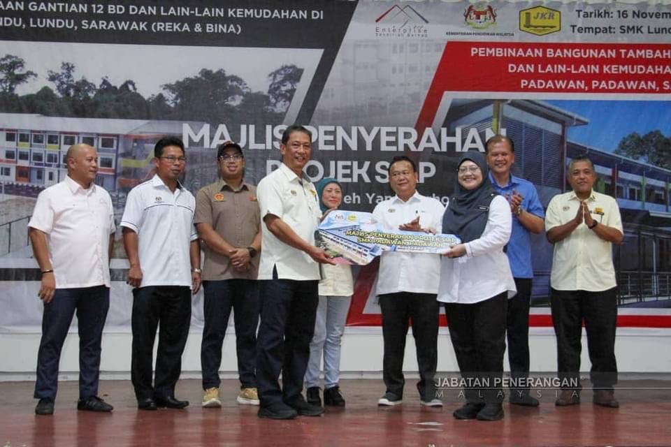 LUNDU: Projek menambah bangunan Sekolah Menengah Kebangsaan (SMK) Lundu dan Sekolah Menengah Kebangsaan (SMK) Padawan telah siap dan diserahkan kepada Kementerian Pendidikan (KPM) hari ini.