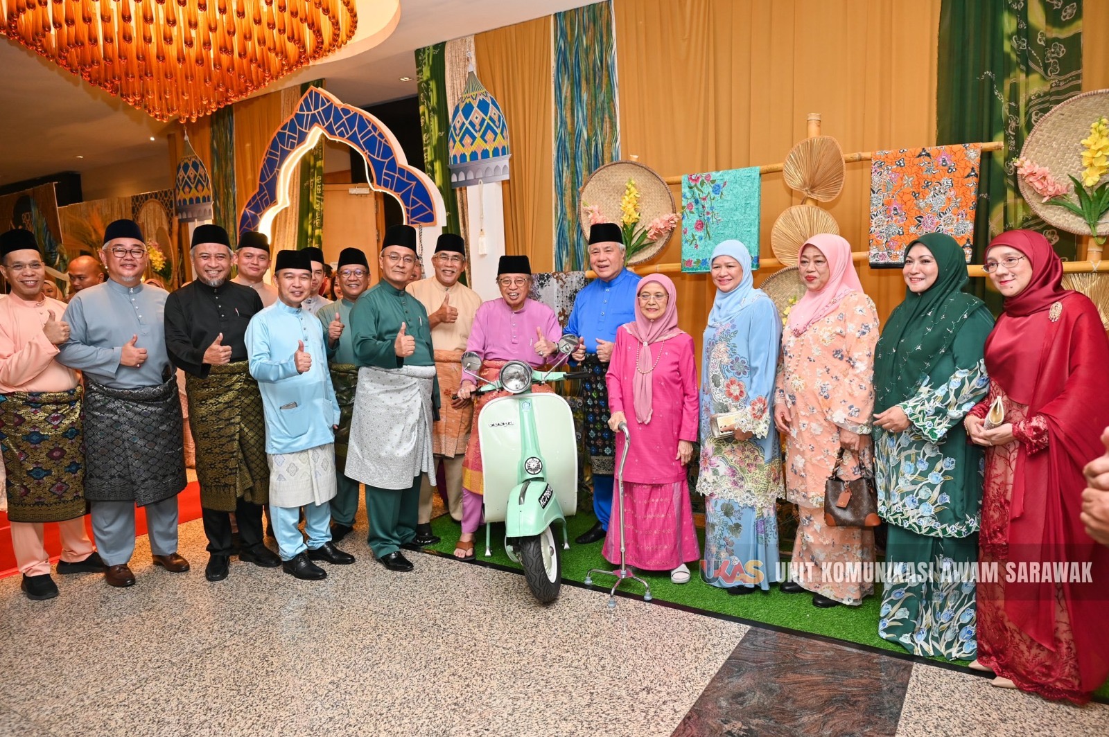 Turut hadir, isteri Premier Sarawak Puan Sri Datuk Amar Hajjah Juma’ani Tun Tuanku Bujang; Timbalan Premier Sarawak, Datuk Amar Awang Tengah Ali Hasan; Timbalan Menteri MUDENR, Datuk Len Talif Salleh dan Setiausaha Tetap MUDENR, Datu Abdullah Julaihi.
